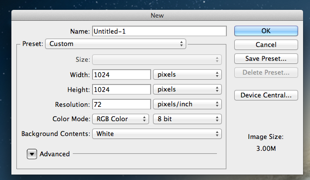 3. Set the size to 1024x1024px. Click Save.